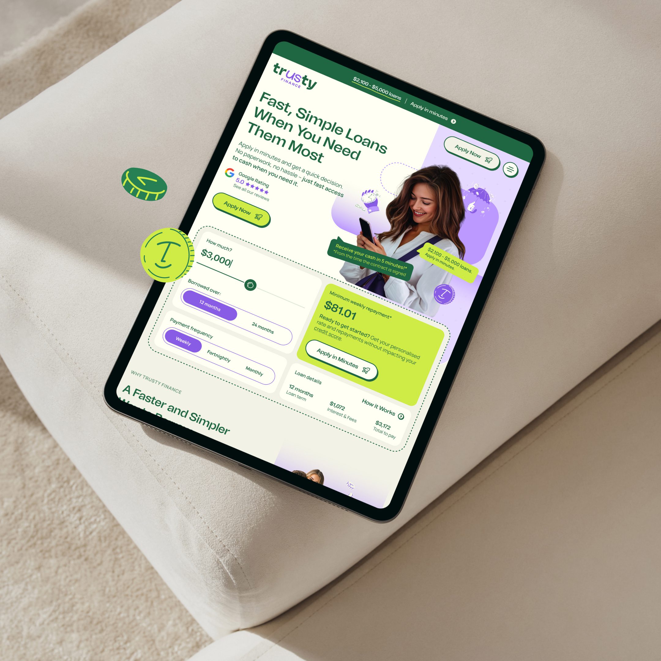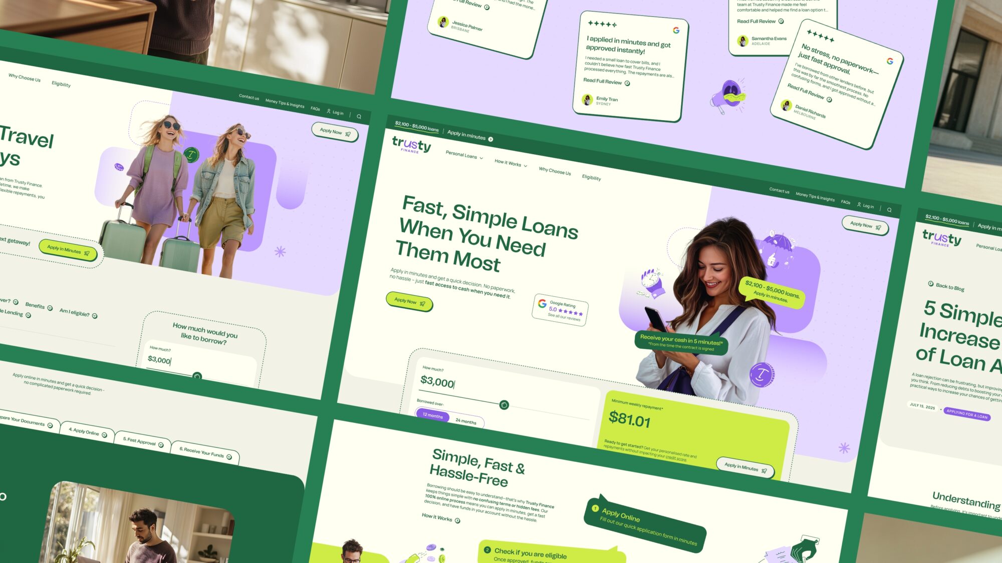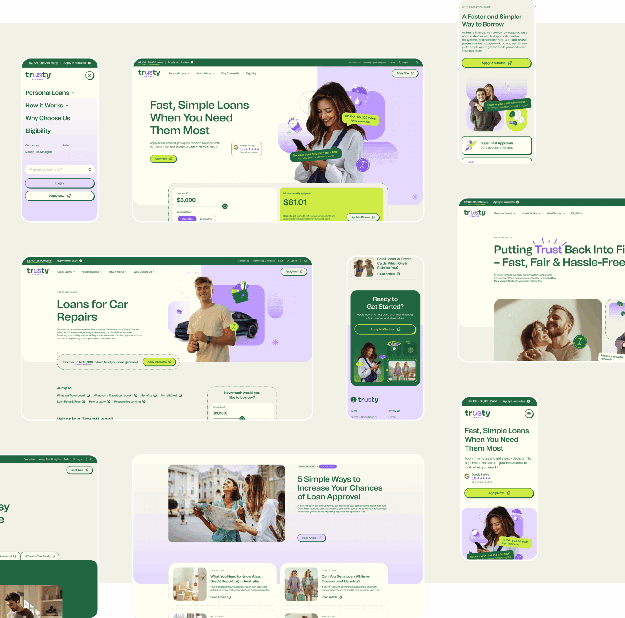 The website was designed with a sharp focus on conversion. From the outset, we ensured calls to action were always visible and easy to act on. The loan range of $2,100 to $5,000 remained front and centre, allowing users to instantly understand what was on offer. Every page element worked to guide users towards a decision point – whether that was completing an application or submitting their details for follow-up. For visitors not ready to commit immediately, we designed nurturing paths that still allowed Trusty to build a relationship. The end product is a website that moves fast and speaks directly to what users need.